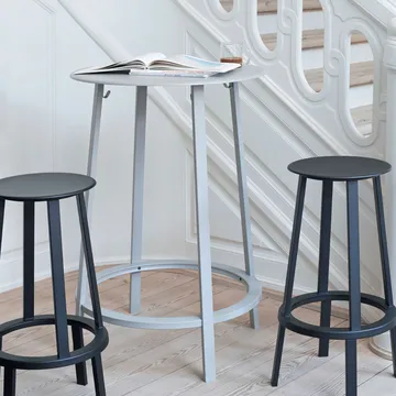 Der Revolver Barhocker von HAY, entworfen von Leon Ransmeier, ist ein funktionelles Möbelstück, das dank der Kugellager eine 360°-Drehung ermöglicht. Dank der Herstellung aus pulverbeschichtetem Stahl und Aluminium ist er sowohl langlebig als auch pflegeleicht. Erhältlich in zwei Höhen, um verschiedene Räume und Bedürfnisse zu erfüllen, und wird zu einem schönen Element im Zuhause.