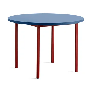Der Two-Colour Esstisch Ø105 cm von HAY wurde von Muller Van Severen entworfen. Dieser Tisch kombiniert robuste Stahlbeine mit einer Tischplatte aus farbenfrohem Valchromat, wodurch die Liebe des Designers zu Materialien und ihrer natürlichen Schönheit zum Ausdruck kommt. Die verschiedenen Farbkomponenten schaffen ein harmonisches Gleichgewicht zwischen Kontrast und Ähnlichkeit, wodurch der Tisch zu einem einzigartigen und originellen Ausdruck wird. Erhältlich in verschiedenen Formen, Größen und Farbkombinationen für eine persönliche Note. Perfekt, um ein elegantes und markantes Esszimmer-Ambiente zu schaffen.