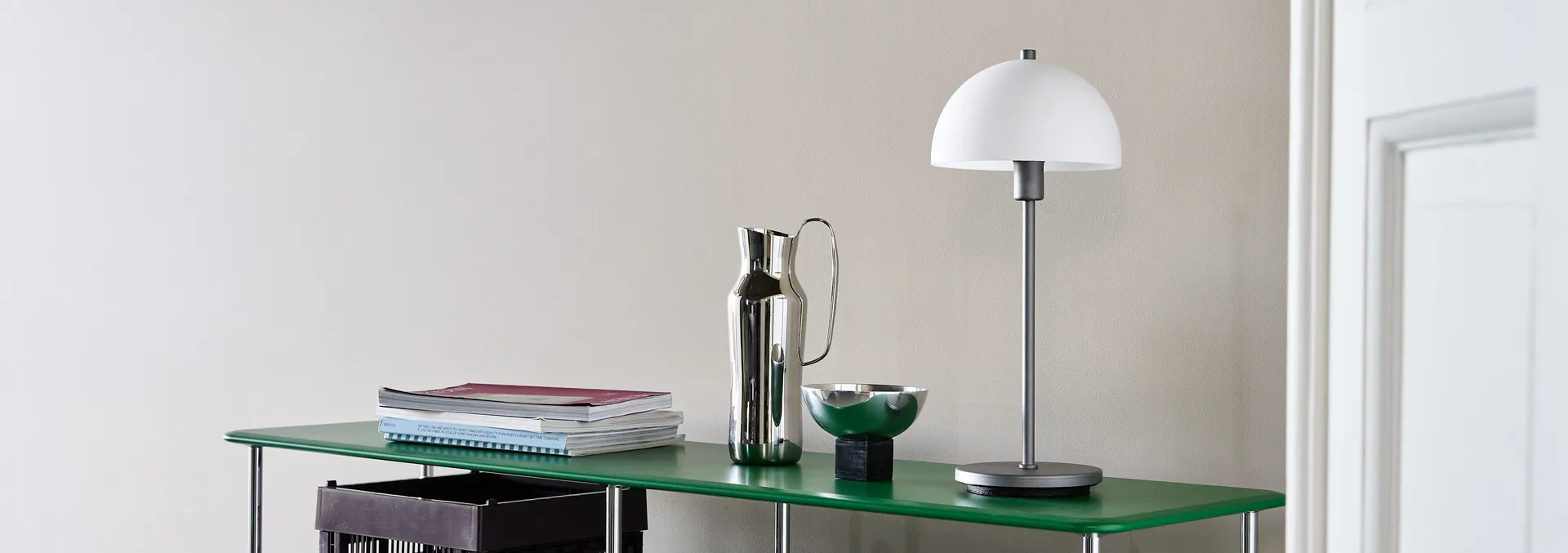 Diese formschöne Tischleuchte namens Vienda X kommt von der dänischen Marke Herstal und ist in verschiedenen Farben bestellbar.
