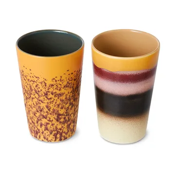 Die 70's Teetasse 46 cl im 2-teilig Set von HKliving ist eine großzügige Tasse mit einem Volumen von 46 cl, perfekt für Tee oder andere heiße Getränke. Hergestellt aus 100% Steinzeug und inspiriert vom Design der 70er Jahre, vereint sie rustikalen Charme mit moderner Einfachheit. Sie wird im Set von zwei Stück verkauft – eine perfekte Ergänzung für Teeliebhaber.