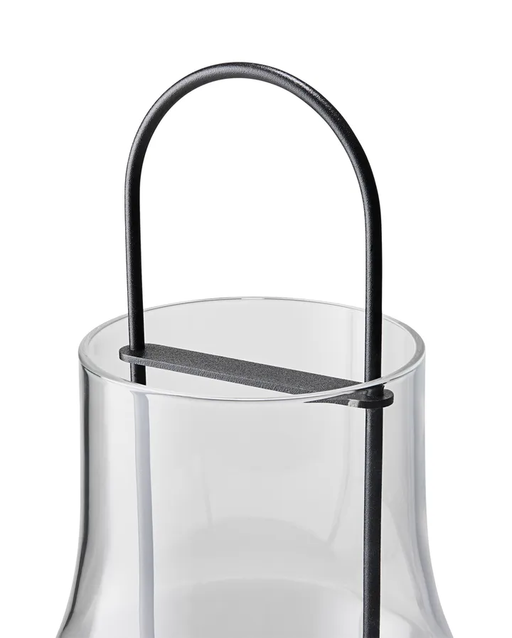 Arc Lanterna 25,5cm von Holmegaard ist mundgeblasen aus Borosilikatglas und verfügt über einen Griff aus pulverbeschichtetem Stahl. Sie ist für Teelichter und Stumpenkerzen geeignet und hat eine Metallplatte oben, die den Griff vor Wärme schützt.
