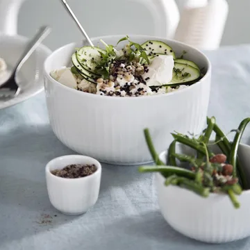 Als besonderes Stilelement dieser kleinen Schalen aus Kählers Hammershøi-Kollektion fallen sofort dezente Rillen am Verschluss auf. Die Hammershøi Porzellankollektion wurde von Hans-Christian Bauer entworfen und kombiniert Vergangenheit und Gegenwart auf eine ganz elegante Weise. Bauer interpretiert die klassischen Rillen, die der dänische Designer Svend Hammershøi (1873-1948) in seinen Designentwürfen wiederkehrend eingesetzt hat, in einer modernen, aktuellen Formsprache. Diese Schale ist in verschiedenen, dezenten Farbtönen verfügbar, die miteinander harmonieren und zum Zusammenstellen eines Services nach ganz individuellen Farbpräferenzen einladen.