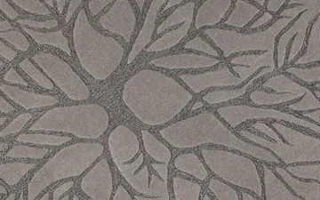 Birds nest ist ein handgetufteter, runder Teppich von Kathea. Der Wollteppich hat eine geschorene Floroberfläche und grobe Schlaufen, die ein Zweigmuster bilden.