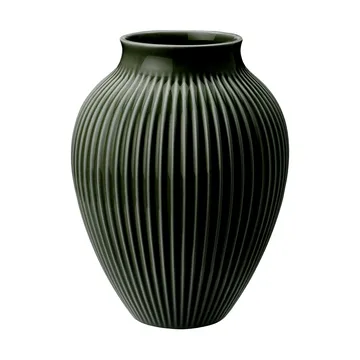 Die Knabstrup Vase geriffelt 27cm von Knabstrup Keramik ist eine elegante und zeitlose Vase, die am besten zur Geltung kommt, wenn sie im Mittelpunkt steht. Die Vase hat eine romantische, runde Form mit geriffelter Struktur und macht sich ebenso gut auf dem Esstisch in der Mitte wie auf einem Beistelltisch oder einer Anrichte. Kombinieren Sie die Vase mit einem großen, prächtigen Strauß, der der Jahreszeit angepasst ist, und die Knabstrup Vase wird das ganze Jahr über ein Favorit sein!