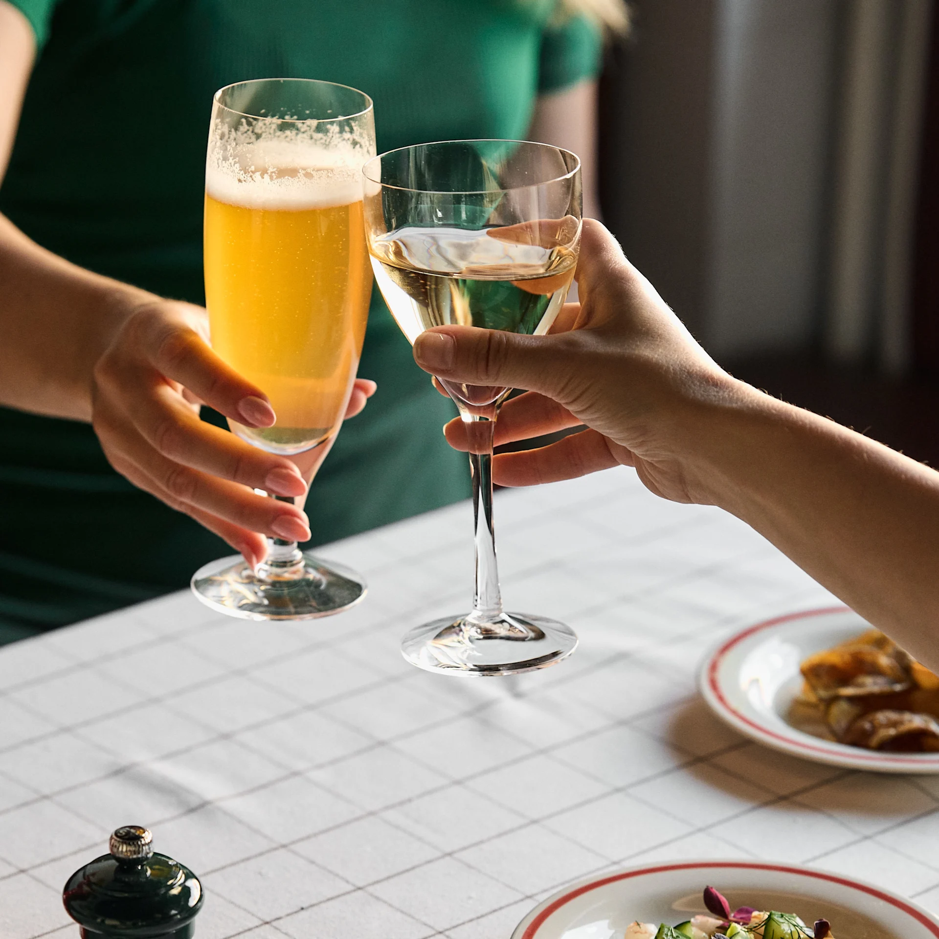 Linie: klassische, minimalistische Gläser mit weichen Formen, umhüllt von einer dekorativen Linie. Entworfen von Anna Ehrner.