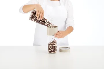 Die Lékué flip Vorratsdose Medium ist eine vielseitige Lösung, um Ihren Küchenstauraum zu optimieren. Perfekt für trockene Waren wie Salz und Nüsse, kann diese Dose dank des Flip-Zubehörs, das zusätzliche 250 ml Kapazität bietet, im Volumen von 600 ml bis 850 ml variieren. Das Modul ist stapelbar und anpassbar für sowohl Regale als auch Schubladen, was Ihnen ermöglicht, Ihre Küche einfach zu organisieren. Das transparente Design bietet Ihnen volle Übersicht über den Inhalt.