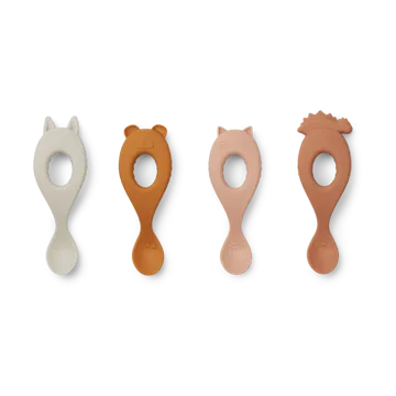Der Livia Löffel im 4-teiligen Set von Liewood ist aus einer Kombination von Silikon und Nylon gefertigt. Diese Silikonlöffel sind perfekt für Kinder, die anfangen, selbstständig zu essen – mit einem griffigen Griff und kleinen Markierungen, die das Halten des Löffels erleichtern. Farbige Details und LIEWOOD-Tiere machen die Mahlzeiten sowohl unterhaltsam als auch funktional.