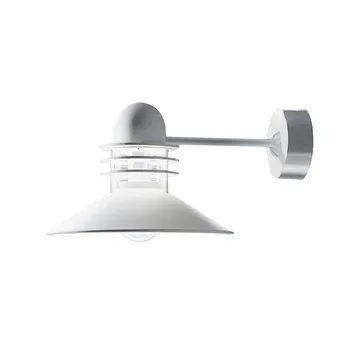 Die Nyhavn Wandleuchte von Louis Poulsen ist aus sorgfältig ausgewählten Materialien gefertigt, um sowohl Qualität als auch Stil zu gewährleisten. Entworfen von Alfred Homann und Ole V. Kjær im Jahr 1976, gewann sie einen Wettbewerb zur Beleuchtung älterer Stadtgebiete von kulturellem Erbe. Mit ihrem charakteristischen kegelförmigen Schirm und drei Blendringen verbreitet sie ein weiches und angenehmes Licht. Diese ikonische Leuchte ist nicht nur eine Lichtquelle, sondern auch ein zeitloses Design, das die Atmosphäre in sowohl modernen als auch traditionellen Außenbereichen, von Gärten bis zu historischen Stadtvierteln, erhöhen kann.