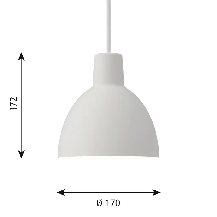Die Toldbod 170 Pendelleuchte von Louis Poulsen hat eine elliptische Form mit einer matten Innenseite, die das Licht gleichmäßig verteilt. Die Lampe gibt ein gerichtetes Licht nach unten ab und eignet sich perfekt zum Aufhängen über einem Tisch oder einer Küchentheke. Die Lampe ist in verschiedenen Größen erhältlich und kann einzeln, paarweise oder in einer Gruppe aufgehängt werden.