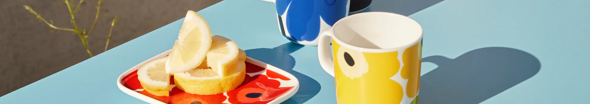 Marimekkos Unikko Kollektion zählt zu den beliebtesten Serien der finnischen Marke und zeichnet sich vor allem durch ihr florales Muster aus, welches auf Produkten wie Tassen, Teller, Kissen und Bettwäsche wiederzufinden ist.