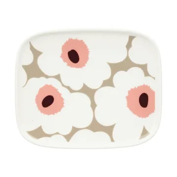 Unikko Teller 12 x 15cm von Marimekko ist ein rechteckiges Dessertteller, verziert mit dem ikonischen Unikko-Muster, entworfen von Maija Isola. Hergestellt aus strapazierfähigem Steingut, eignet es sich sowohl für den täglichen Gebrauch als auch für besondere Anlässe — spülmaschinen-, ofen-, mikrowellen- und gefriergeeignet, was es in der Küche besonders praktisch macht. Die schlichte Form und das markante Muster machen den Teller perfekt zum Servieren von kleinen Speisen, Gebäck oder als dekoratives Detail auf dem Tisch, das das Essen hervorhebt. Entfernen Sie vor der Verwendung das Etikett von der Unterseite.