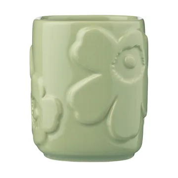 Der Unikko Zahnbürstenhalter von Marimekko ist ein Keramikbecher, verziert mit der Unikko-Blume, entworfen von Maija und Kristina Isola. Der Becher eignet sich ebenso gut für Zahnbürsten wie für kleine Gegenstände – ein kreatives und praktisches Wohnaccessoire.