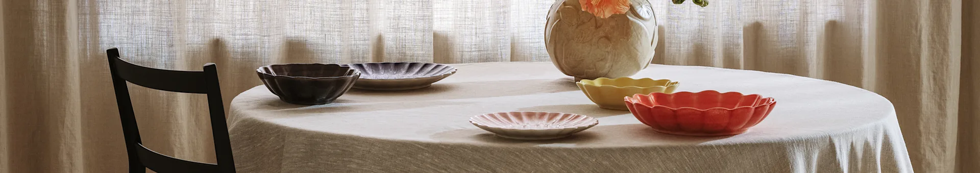 Die schwedische Marke Mateus kombiniert traditionell portugiesisches Kunsthandwerk mit schwedischem Design, was in farbenfrohen Tassen, Tellern und Schalen resultiert, die für eine fröhliche und lebendige Tischdekoration sorgen.