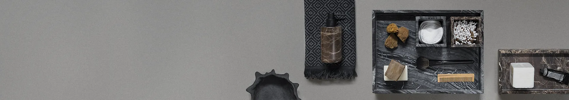 Bei Mette Ditmer finden sich Kreationen aus Keramik, kombiniert mit Gummi und Messing sowie moderne Textilien. So entstehen wunderschöne, elegante Wohndetails für das Badezimmer, die farblich so abgestimmt sind, dass sie auch untereinander kombiniert werden können. Vom zeitlosen Teppiche und schlichten Zahnputzbechern bis hin zum eleganten Seifenspender ist alles dabei.