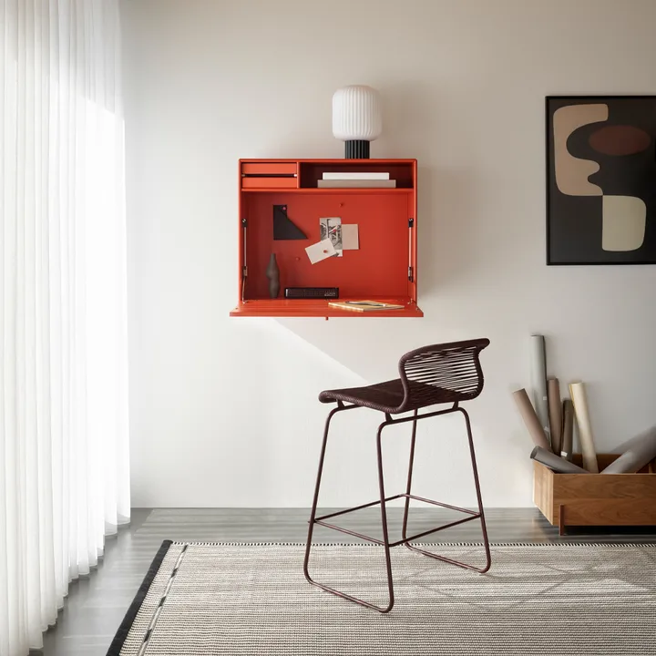 Der STUDIO Schreibtisch wandhängend von der dänischen Marke Montana ist ein von Peter J. Lassen entworfenes Tisch und besteht aus lackiertem MDF und hat eine magnetische Pinnwand auf der Innenseite. Vermeiden Sie unordentliche Schreibtische mit einem, das praktisch an die Wand geklappt werden kann und Stifte und andere kleine Schreibtischartikel in den kleinen Schubladen aufbewahrt. Der Tisch wird den Raum mit seinem eleganten und modernen Design aufwerten. Kombinieren Sie es gerne mit weiteren Teilen aus Montanas vielseitigem Sortiment für ein einheitliches Gefühl.