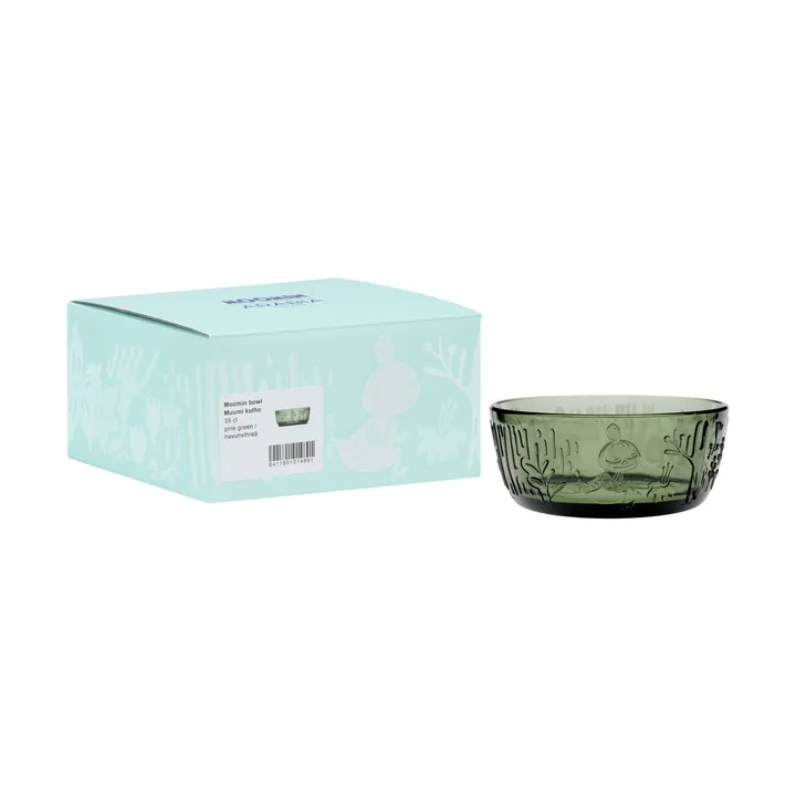 Die Moomin Schale 35 cl von Moomin Arabia ist aus Glas gefertigt und von Tove Janssons Roman Trollkarlens hatt inspiriert. Die Schale ist reich detailliert und fängt die magische Stimmung im Mumintal ein, wo die Muminfamilie Verstecken spielt. Perfekt, um Ihrer Tischdekoration eine Portion Verspieltheit und Moomin-Magie hinzuzufügen.
