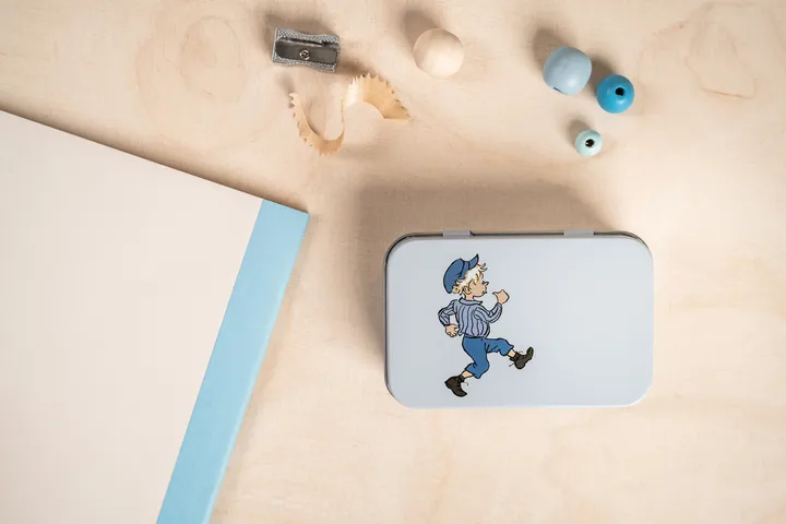 Die Emil Blechdose 10x6,5x3 cm von Muurla ist aus robustem Blech gefertigt und ziert eine charmante Emil i Lönneberga-Illustration, entworfen von Kata Nowak-Kiminki. Diese kleine Dose mit Deckel und Scharnieren ist perfekt, um Ihre wertvollsten Kleinigkeiten aufzubewahren. Eine Hommage an Björn Bergs Originalillustrationen.