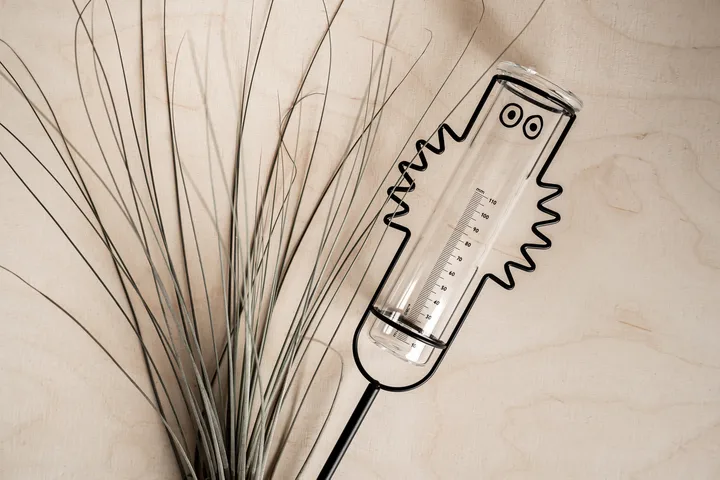 Das Hattifnatt Regenmesser von Muurla ist aus Borosilikatglas und pulverbeschichtetem Eisen hergestellt. Diese charmante Gartendekoration, inspiriert von den mysteriösen Kreaturen aus den Mumin-Geschichten, misst den Regen in Millimetern. Stellen Sie sie aufrecht an einem offenen Ort für die besten Ergebnisse auf. Vermeiden Sie Minustemperaturen, um Schäden zu verhindern.