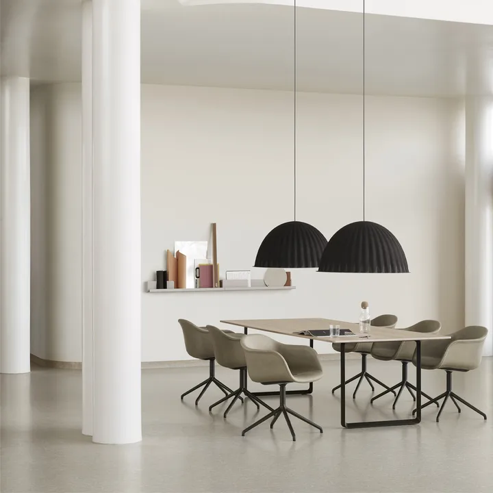 Der 70/70 Esstisch 295 x 108cm von Muuto kombiniert geometrische Formen und skandinavische Ästhetik. Das warme, schichtverleimte Holz der Tischplatte verschmilzt mit den eleganten Aluminiumrahmen der Basis von 70x70 cm. Die großzügige Größe von 295x108 cm bietet ausreichend Platz für Abendessen, Arbeit oder kreative Projekte. Eine perfekte Mischung aus Funktionalität und erstklassigem Design für Ihr Zuhause.