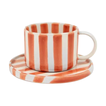 Die Monica Tasse mit Untertasse von Olsson & Jensen ist eine wunderschöne Steinzeugtasse mit handgemaltem Design, wodurch jedes Exemplar einzigartig wird. Hergestellt aus 100 % Steinzeug, vermittelt diese Tasse mit Untertasse ein robustes und solides Gefühl, das sowohl im Alltag als auch bei besonderen Anlässen geeignet ist. Das zeitlose Streifendesign und die charmanten Variationen in der Malerei machen jedes Set persönlich. Perfekt, um stilvoll Kaffee oder Tee zu genießen!