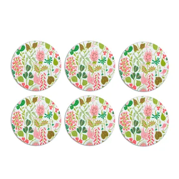 Das Herbarium Glasuntersetzer im 6er Pack von Opto Design ist sowohl ein schönes als auch praktisches Detail für den gedeckten Tisch. Sie sind aus laminiertem Birkenfurnier mit dem herrlich blumigen Muster Herbarium von Stig Lindberg gefertigt. Stig Lindberg ist einer der beliebtesten Designer Schwedens aller Zeiten, vielleicht am bekanntesten für das Porzellan, das er für die Gustavsbergs Porslinsfabrik entworfen hat. Mit der Stig Lindberg-Kollektion von Opto Design bekommen seine Muster die Chance, auf Glasuntersetzern, Tabletts und anderen Küchenartikeln weiterzuleben.