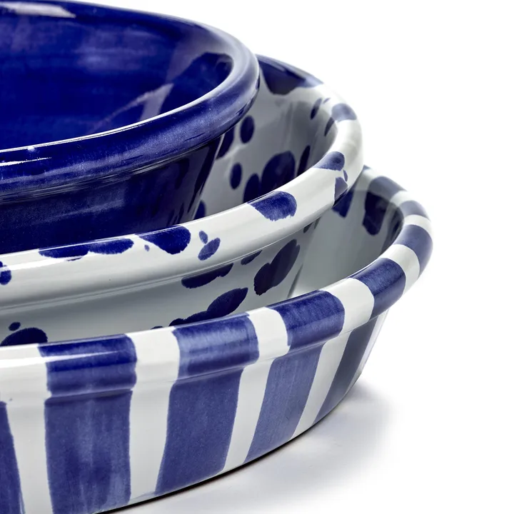 Die gemusterte Table Nomade Salatschale M von Serax ist perfekt für einen frischen Salat, kann aber natürlich auch zum Servieren anderer Gerichte verwendet werden. Die runde Schale ist handbemalt und hat einen abfallenden Rand. Kombinieren Sie sie gerne mit den Salatschalen in den Größen S und L aus derselben Serie. Mit ihren verschiedenen Mustern ergänzen sie sich perfekt und lassen sich auch ineinander stapeln, was Platz im Küchenschrank spart. Die Designerin Paola Navone ließ sich für die Serie Table Nomade von ihren zahlreichen Reisen inspirieren, bei denen Farben, Muster, Formen und Materialien alltäglicher Gegenstände aus verschiedenen Kulturen und Traditionen wichtige Inspirationsquellen für sie sind.