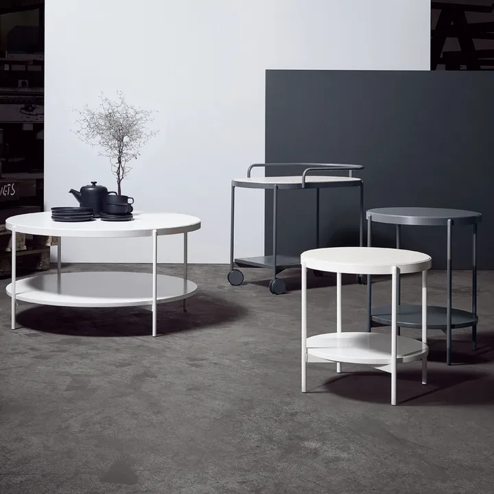 Der Lene Beistelltisch von SMD Design, entworfen von Stina Sandwall, kombiniert Eleganz mit Funktionalität. Der Tisch hat ein Metallgestell mit glatter Pulverbeschichtung, erhältlich in ein- oder zweifarbiger Ausführung. Die Tischplatte ist in passender lackierter MDF oder weißem Eschenfurnier erhältlich. Als Teil einer Serie von Möbeln mit skandinavischem Gefühl, einschließlich Rollwagen und Couchtisch, bietet die Lene-Serie einen detaillierten und harmonischen Ausdruck.