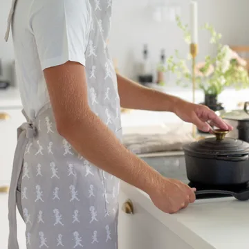 Die Solstickan Schürze für Erwachsene von der schwedischen Solstickan Design ist aus hochwertiger Baumwolle gefertigt und mit dem klassischen Solstickepojken-Muster verziert, das 1936 von Einar Nerman entworfen wurde. Die Schürze ist mit Bindebändern an Taille und Nacken ausgestattet, um sie einfach auf die gewünschte Passform anpassen zu können. Die ebenso schöne wie praktische Schürze schützt Sie vor Verschütten und Kleckern während der Zubereitung von Abendessen und beim Backen mit der Familie.