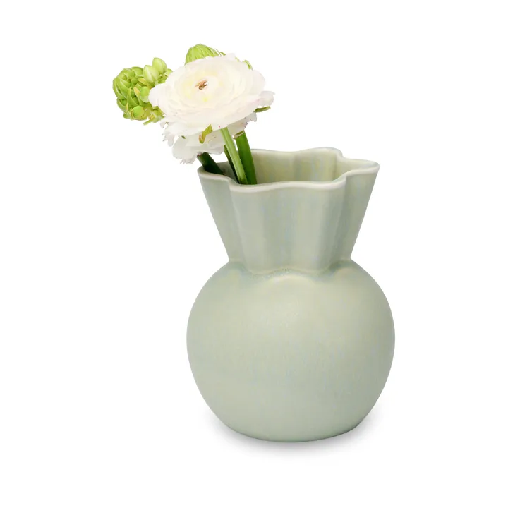 Die Eva Stæhr-Nielsen Vase 14 cm von Spring Copenhagen ist aus glasiertem Keramik gefertigt. Mit ihrer geschwungenen Spitze und kompakten Größe ist sie ideal für kleine Blumensträuße aus dem Garten oder Wald. Stellen Sie sie auf ein Regal oder eine Fensterbank, um ihr einzigartiges Design zu genießen und das künstlerische Erbe von Eva Stæhr-Nielsen zu würdigen.