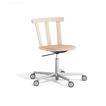 Alt Drehstuhl mit gepolstertem Sitz Birke von Stolab wurde von Form Us With Love entworfen. Dieser einzigartige Stuhl kombiniert Massivholz mit einem gepolsterten Sitz und verfügt über ein Drehgestell mit Rollen, das einfache Bewegungen ermöglicht. Höhenverstellbarkeit und eine Kippfunktion bieten zusätzlichen Komfort, wodurch er ideal für das Homeoffice ist. Die großzügige Rückenlehne und das anpassbare Design des Stuhls verstärken sowohl den Sitzkomfort als auch die ästhetische Wirkung.