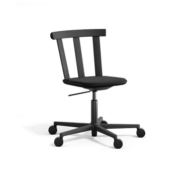 Alt Drehstuhl mit gepolstertem Sitz Birke von Stolab wurde von Form Us With Love entworfen. Dieser einzigartige Stuhl kombiniert Massivholz mit einem gepolsterten Sitz und verfügt über ein Drehgestell mit Rollen, das einfache Bewegungen ermöglicht. Höhenverstellbarkeit und eine Kippfunktion bieten zusätzlichen Komfort, wodurch er ideal für das Homeoffice ist. Die großzügige Rückenlehne und das anpassbare Design des Stuhls verstärken sowohl den Sitzkomfort als auch die ästhetische Wirkung.