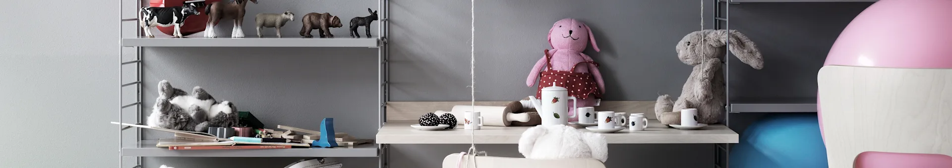 Die Aufrechterhaltung von Ordnung in einem Kinderzimmer kann eine Herausforderung sein, wenn Spielzeug, Kleidung und Kuscheltiere oft auf dem Boden verstreut sind. Funktionale Aufbewahrungslösungen können helfen, Unordnung zu vermeiden. Das String-Regalsystem, vom kompakten String Pocket bis hin zu kompletten Regalsystemen, bietet eine anpassbare Lösung für ein aufgeräumtes Zimmer. Das String-System kann erweitert oder reduziert werden, um sich ändernden Aufbewahrungsbedürfnissen gerecht zu werden, was es mühelos anpassbar für jede Anforderung macht.