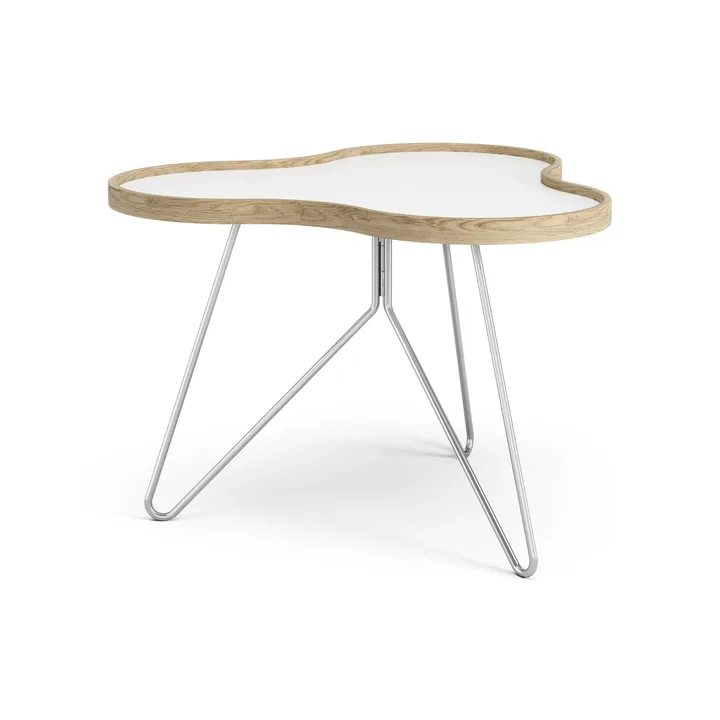 Der Flowertisch 62 x 66 cm der schwedischen Marke Swedese ist ein niedriger Tisch mit einer Tischplatte aus Laminat, die wie eine Blume gestaltet ist und auf einem Stahlgestell ruht. Dank des niedrigen Designs des Tisches eignet sich dieser hervorragend als Couchtisch unabhängig davon, für welche Tischbreite Sie sich entscheiden.