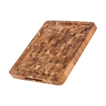 Butcher Block Carving Schneidbrett 313 von Teakhaus ist ein robustes Endstück-Schneidbrett, das sowohl die Alltagsküche als auch Grillabende liebt. Mit Griff, Saftkanal und wendbarem Design ist es praktisch und messerschonend. Hergestellt aus FSC®-zertifiziertem Holz für lange Lebensdauer. Nur Handwäsche. Ein zeitloser Begleiter in der Küche, der sich vertraut und einladend anfühlt.