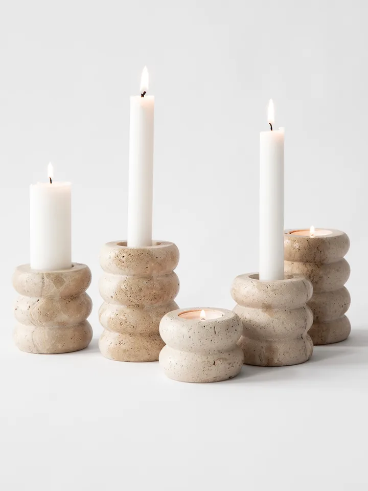 Der Travertin Kerzenständer von Tell Me More ist aus natürlichem Travertinstein gefertigt und hat ein elegantes Design. Der Kerzenständer kann sowohl mit Stabkerzen als auch mit Teelichtern für verschiedene Dekorationsmöglichkeiten verwendet werden.