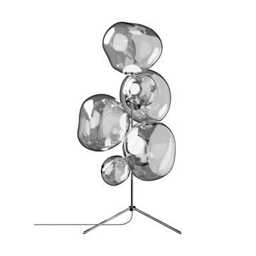 Melt Chandelier Stehleuchte LED 175 cm von Tom Dixon ist eine großartige Beleuchtungslösung, die jedem Raum eine künstlerische Note verleiht. Die einzigartigen Lampenschirme erzeugen eine hypnotische Reflexion und machen diese Stehleuchte zu einem markanten Blickfang. Mit einer Höhe von 175 cm bietet sie sowohl Funktionalität als auch visuelle Anziehungskraft. Die Leuchte vereint Form und Funktion, um in jedem Zuhause Aufmerksamkeit zu erregen. Eine perfekte Leuchte für alle, die etwas Außergewöhnliches suchen.