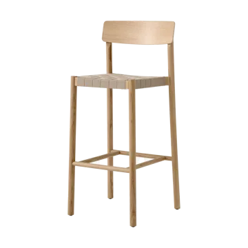 Betty TK15 Bar Chair Barstuhl 75 cm von &Tradition ist ein eleganter Barstuhl, der speziell dafür entworfen wurde, perfekt an die heimische Bartheke oder an hohe Esstische zu passen. Mit seinem massiven Holzrahmen, der sorgfältig geformten Rückenlehne und einer praktischen Fußstütze bietet er sowohl Stabilität als auch hohen Sitzkomfort, selbst bei längerem Sitzen. Das zeitlose Design macht den Stuhl leicht in verschiedene Einrichtungsstile integrierbar und verbindet Funktionalität mit Ästhetik. Ein durchdachtes Möbelstück, das skandinavisches Design mit alltäglicher Praxistauglichkeit kombiniert.