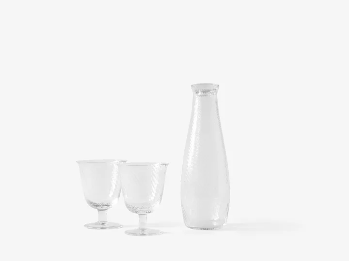 Die Collect SC79 Weinglas im 2er-Pack von &Tradition sind von dem Designstudio Space Copenhagen entworfen worden. Die mundgeblasenen Gläser haben eine wellenförmige Textur, die dem gedeckten Tisch einen lebhaften Eindruck verleiht.