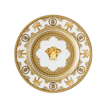 Der kleine Versace I love Baroque Teller ist in einer Zusammenarbeit zwischen dem deutschen Porzellanhersteller Rosenthal und dem legendären Modehaus Versace entstanden. Das komplizierte Muster mit Golddekor verleiht dem Teller einen luxuriösen Look, der am besten zu Goldbesteck und funkelndem Kristallglas passt. Der Teller besteht aus strapazierfähigem Feldspat Porzellan und wird in Rosenthals eigener Fabrik in Deutschland hergestellt. Der stilvolle Teller ist die perfekte Kombination aus solider deutscher Handwerkskunst und extravagantem italienischem Design.