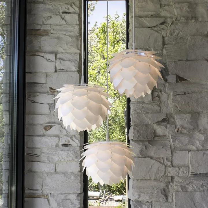 Silvia - hier in zeitlos schönem Weiß - ist eine rund geformte Leuchte des dänischen Leuchtendesigners Umage / Vita. Die zeitlose Form geht auf Soren Ravn Christensen und Anders Klem zurück und ist in verschiedenen Größen erhältlich. Diese Leuchte kann mittels der separat bestellbaren Basis auch als Stehleuchte oder Tischleuchte verwendet werden. Die Silvia Leuchte wird unmontiert in einer eleganten, flachen Box geliefert, und lässt sich mittels der Aufbauanleitung per Hand zusammensetzen.