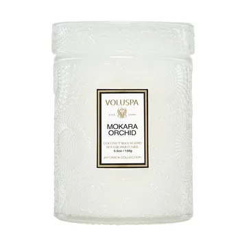 Die Japonica Duftkerze von Voluspa kommt in einer schönen Glasdose und hat eine Brenndauer von 50 Stunden. Die handgefertigte Duftkerze besteht aus einer Phthalat-, Paraben- und Sulfatfreien Kokosnusswachsmischung. Das Glas mit Deckel hat eine wunderschön reliefierte Oberfläche, welche die Duftkerze zu einem dekorativen Wohnaccessoire macht und gleichzeitig einen angenehmen Duft im Haus verbreitet.