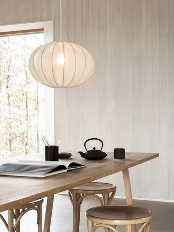 Boll 40 linen Lampenschirm von Watt&Veke ist eine elegante, kürbisförmige Deckenleuchte mit einem Gestell aus schwedischem Stahl und bezogen mit einem Leinenmix-Stoff. Ihre weiche Form und der feine Lichtdurchlass machen sie perfekt, um in Schlafzimmern, Wohnzimmern oder Fluren eine warme und einladende Atmosphäre zu schaffen. Kombinieren Sie sie mit einer Deckenaufhängung in verschiedenen Farben, um Ihren persönlichen Stil zu unterstreichen. Ein stilvolles und funktionales Detail, das den Raum aufwertet.