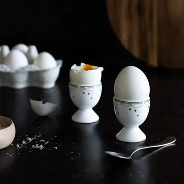 Der Julemorgen Eierbecher von Wik & Walsøe ist ein Set aus zwei wunderschön verzierten Eierbechern in den klassischen Weihnachtsfarben Rot, Grün und Gold. Hergestellt aus elegantem Knochenporzellan, trägt jeder Becher eine weiche und fast ätherische Ästhetik, die perfekt zu den zarten Julemorgen-Motiven passt, die die gesamte Kollektion schmücken. (automatische Übersetzung von www.nordicnest.se)