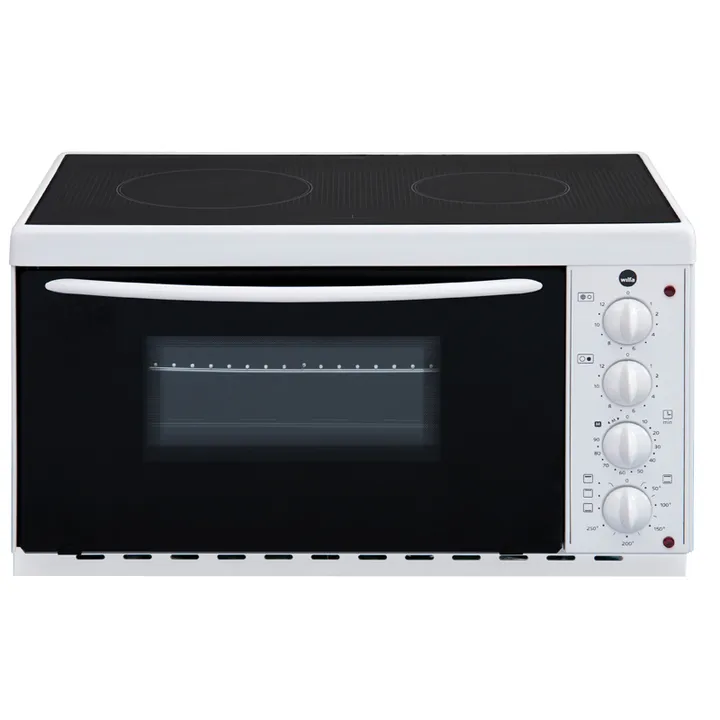 EMC Tischofen von Wilfa ist aus rostfreiem Stahl gefertigt und hat ein keramisches Kochfeld. Der Ofen ist mit einem Grillelement ausgestattet und bietet sowohl Ober- als auch Unterhitze. Jede Kochplatte hat 6 Leistungsstufen, und der Thermostat kann zwischen 50-250°C eingestellt werden.