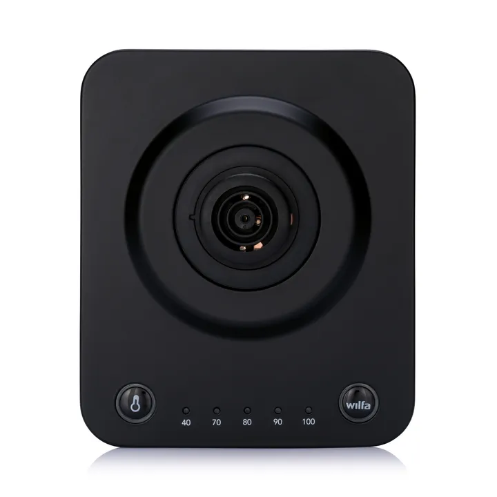 WSDK-2000B Wasserkocher mit Temperaturwahl 1,25 L von Wilfa ist aus rostfreiem Stahl gefertigt. Er hat doppelisolierte Wände, die die Wärme länger halten und verhindern, dass die Oberfläche zu heiß wird. Mit einstellbarer Temperatur können Sie zwischen 40°C, 70°C, 80°C, 90°C oder 100°C wählen, perfekt für verschiedene Teesorten.