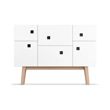 Der Peep C2 Schrank von Zweed wurde von Håkan Johansson entworfen und zeichnet sich durch seine einzigartig platzierten Griffe aus, die einen Einblick in den Inhalt des Schranks bieten. Der subtile Unterschied, den diese Griffe erzeugen, wird durch die einfachen Linien des Schranks ausgeglichen. Die Türen sind mit eingebauten Dämpfern ausgestattet, um sanft und leise zu schließen. Das Modell ist in verschiedenen Varianten und Farboptionen erhältlich, sowie mit der Option eines Beinrahmens, was es leicht macht, das Passende für Ihre Bedürfnisse zu finden.