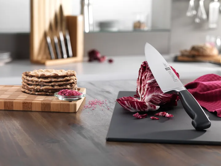 Zwilling Four star Kochmesser 20 cm ist ein unverzichtbarer Küchenpartner. Die lange FRIODUR®-Klinge, gefertigt aus rostfreiem Spezialstahl durch Eishärtung, bietet unvergleichliche Schärfe und Flexibilität. Mit einem ergonomischen, rutschfesten Griff und SIGMAFORGE®-Konstruktion sorgt es für perfekte Balance und Sicherheit. Ideal zum Hacken von Kräutern oder zum Schneiden von Fleisch und Fisch. DISHWASHER-friendly, auch wenn Handwäsche empfohlen wird, um den ausgezeichneten Zustand zu erhalten. Das Produkt wird von ZWILLINGs lebenslanger Garantie unterstützt, was es zu einer nachhaltigen Investition für ernsthafte Köche macht.