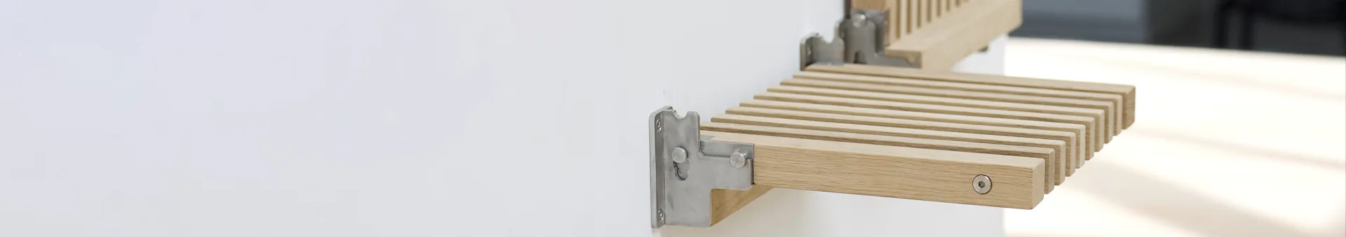 Mit einem klappbaren Stuhl an der Wand erhalten Sie eine komfortable Sitzmöglichkeit, ohne, dass der Stuhl Platz in einem kleinen Raum einnimmt. Wandstühle sind beliebte Accessoires in einem kleinen Flur, aber auch in anderen Räumen des Hauses, in denen Sie mehr Platz schaffen möchten, wie im Badezimmer oder in der Küche.