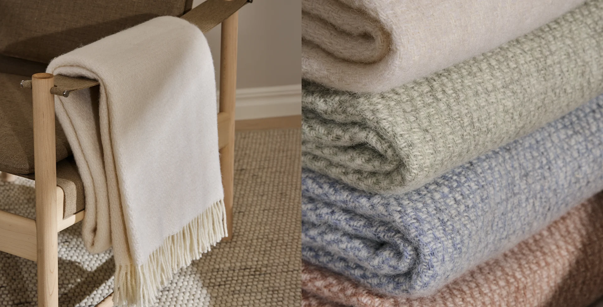 Bei uns finden Sie eine sowohl Moderne Design von Muuto wie auch klassische schwedische Wolldecken von Klippan Yllefabrik. Falls Sie eine sehr hochwertige, eklusive Wolldecke suchen, empfehlen wir die Wolldecken aus der Elvang Denmark Kollektion.