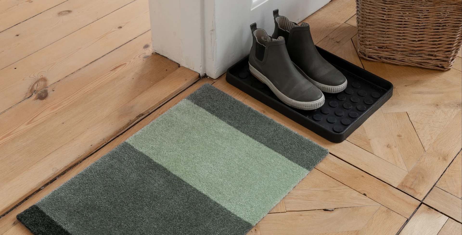 Einige Fußmatten sind speziell für den Innenbereich konzipiert, z. B. Küchenmatten. Eine Baumwoll-Fußmatte hingegen kann eine perfekte Ergänzung für den Flur oder das Schlafzimmer sein, wie die Designer-Fußmatten von Boel & Jan.